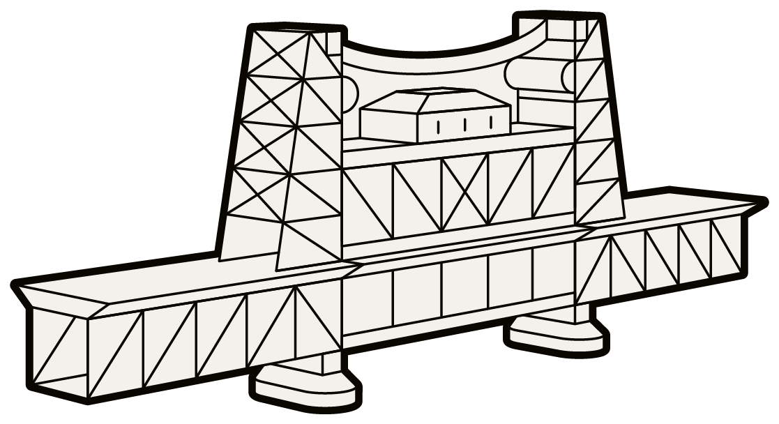 A series of Illustrations depicting landmarks in Portland, Oregon.